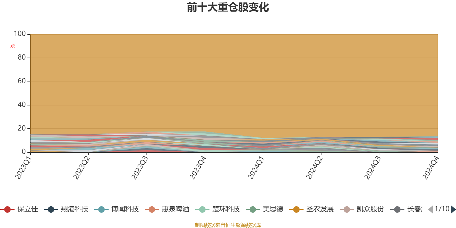 截至2024年四季度末,基金十大重仓股分别是溯联股份、铁流股份、日辰股份、泰祥股份、康拓医疗、兴业科技、惠泉啤酒、绿田机械、炜冈科技、德固特。