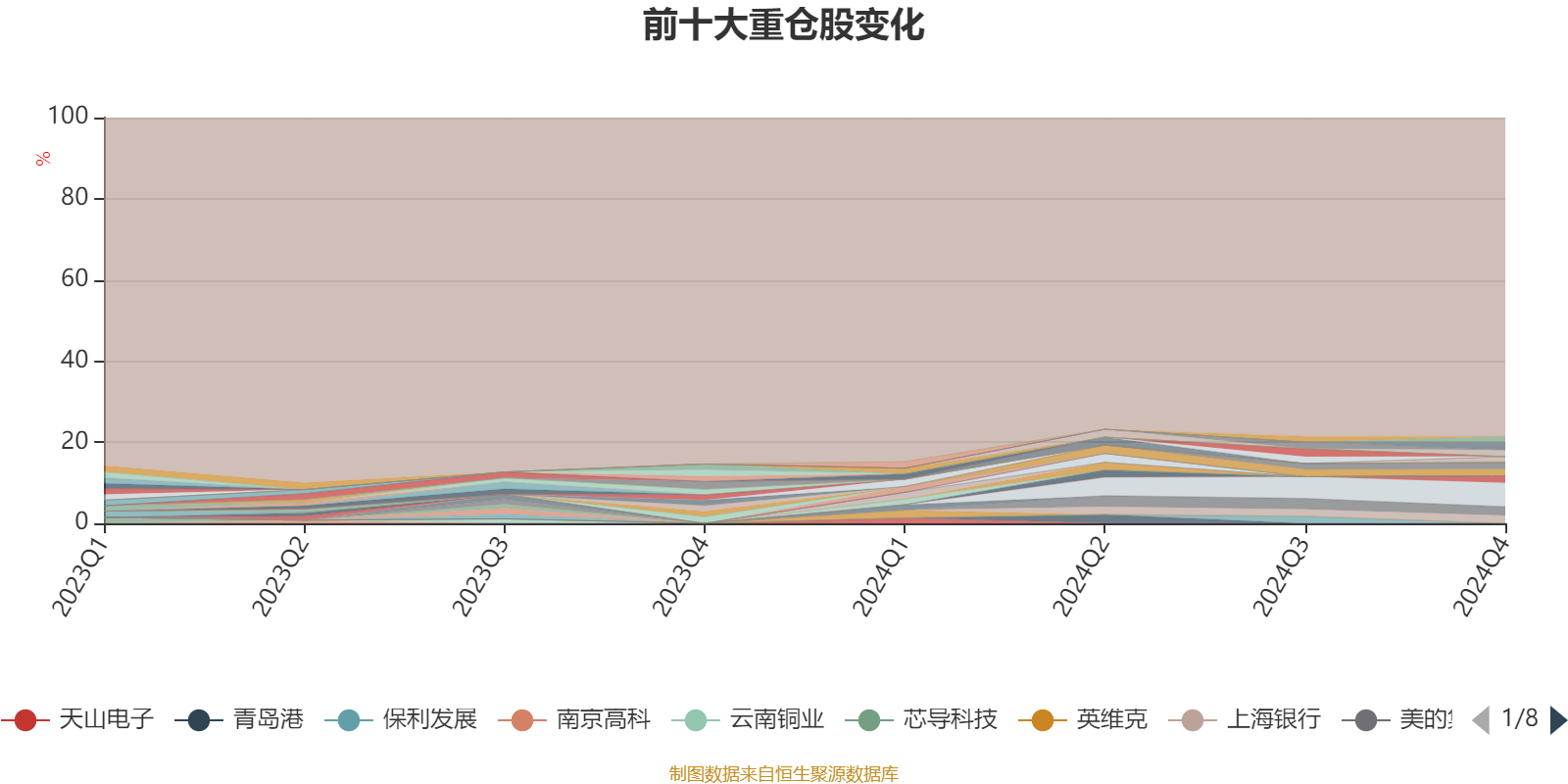 截至2024年四季度末,基金十大重仓股分别是宁德时代、美的集团、上海银行、海天味业、海螺水泥、海尔智家、紫金矿业、立讯精密、华能水电、华夏银行。